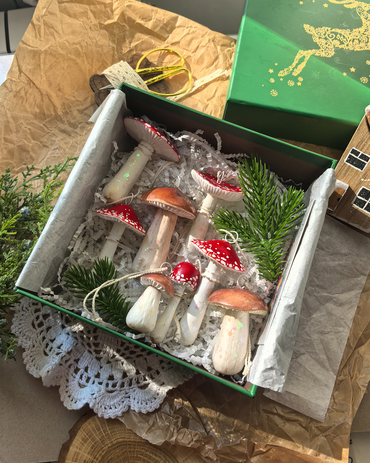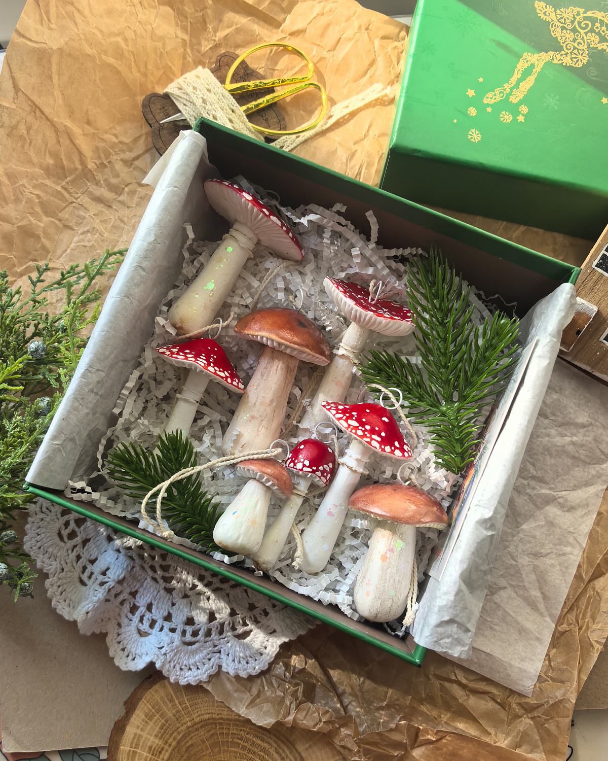 Цена указана за набор из восьми грибов. Игрушки упакованы в коробку, отлично подойдут в качестве подарка.