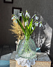 Цветы и листва слеплены вручную из смеси флористических глин, окрашены масляными красками и сухой пастелью. Надёжно закреплены в вазе с имитацией воды.