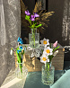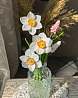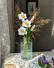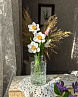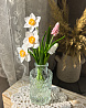 Цветы надёжно закреплены в вазе с имитацией воды.